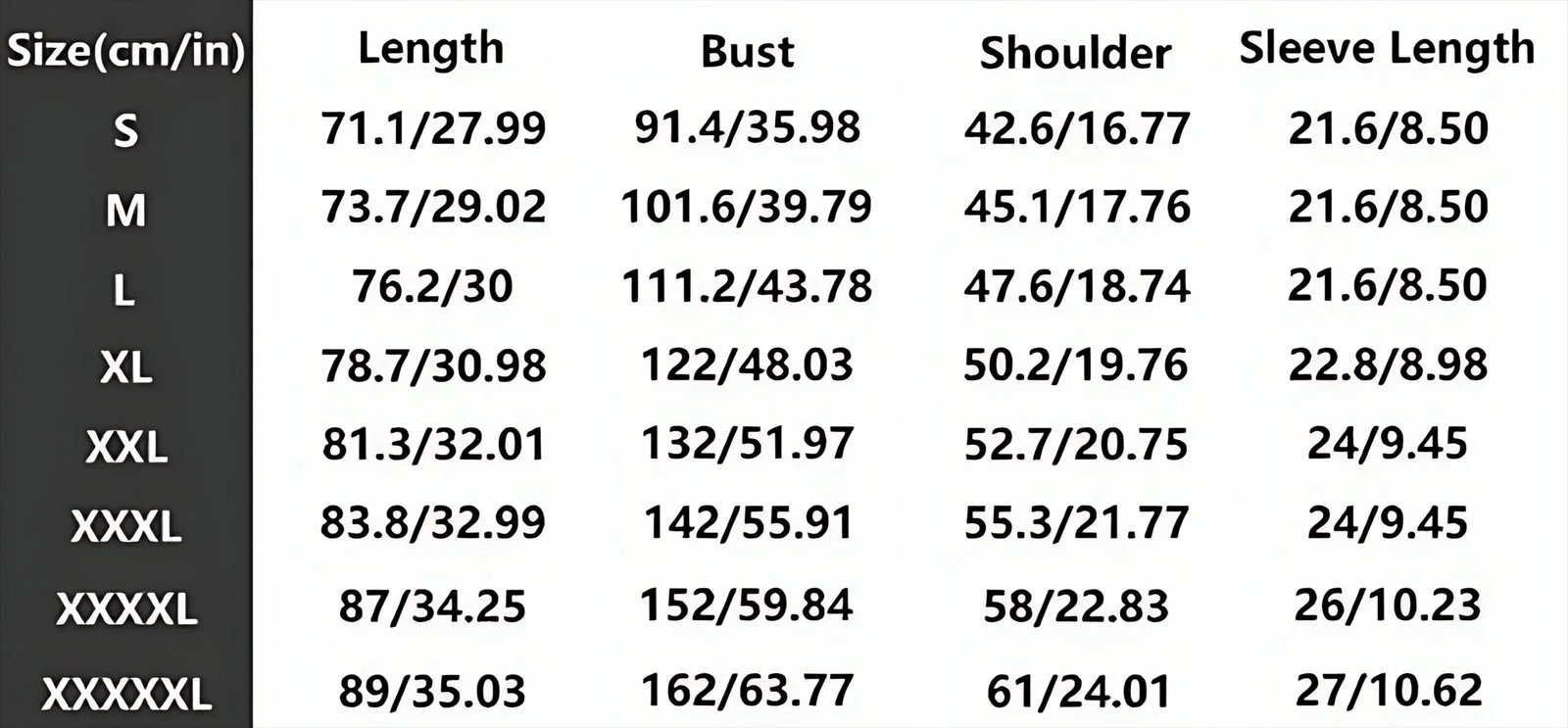 | Sleeve Length(cm) | Short (4 – 16 Inch) |