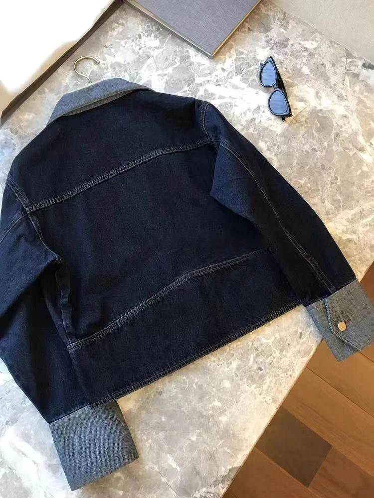 Women’s Retro Contrasting Color Denim Jacket Casual